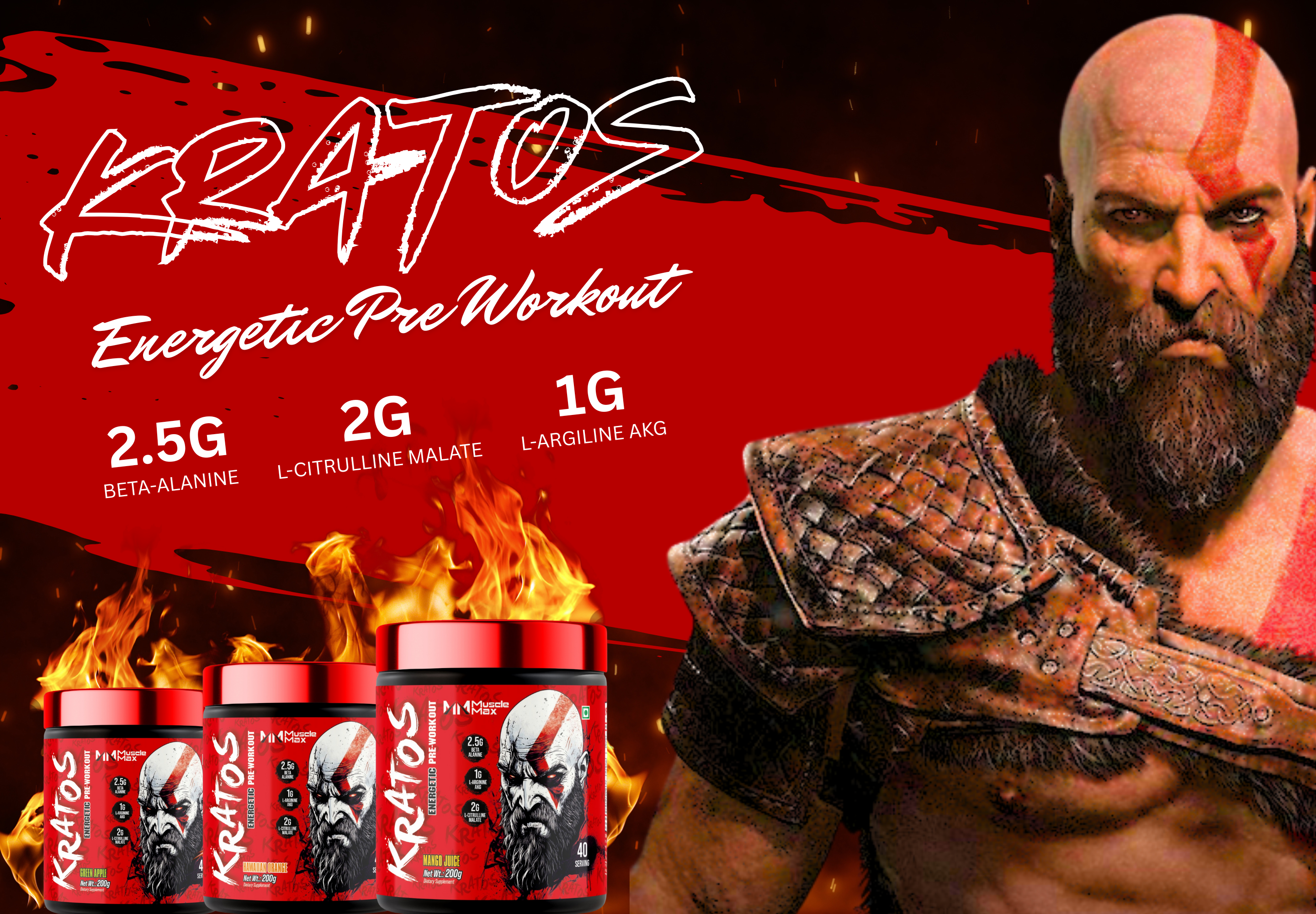 Step into beast mode with KRATOS, the ultimate energized pre-workout by Muscle Max. Designed for serious athletes and lifters, KRATOS delivers explosive energy, razor-sharp focus, and unmatched endurance to dominate every rep, every set, every session.
