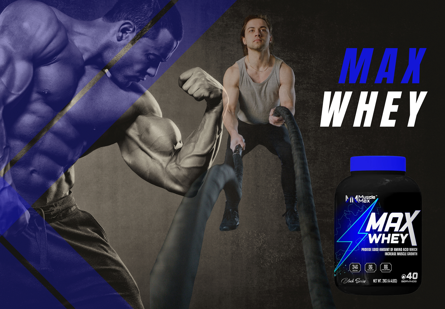 Fuel your gains with MAX WHEY, the ultimate whey protein formula by Muscle Max. Packed with 24g of high-quality protein, 0g sugar, and 0g fat, it delivers clean, fast-digesting nutrients to support muscle recovery, lean growth, and peak performance.