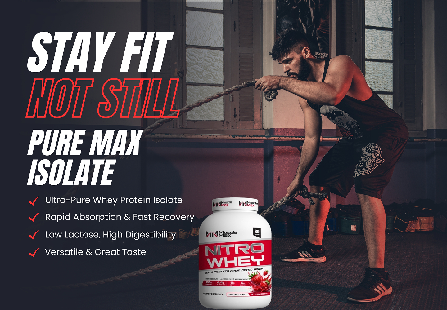 Supercharge your training with Muscle Max Nitro Whey, a powerful formula packed with 28g of fast-absorbing protein sourced from Nitro Whey. Designed for athletes who demand more, it fuels rapid muscle growth, speeds up recovery, and boosts performance – all with a delicious strawberry punch.
