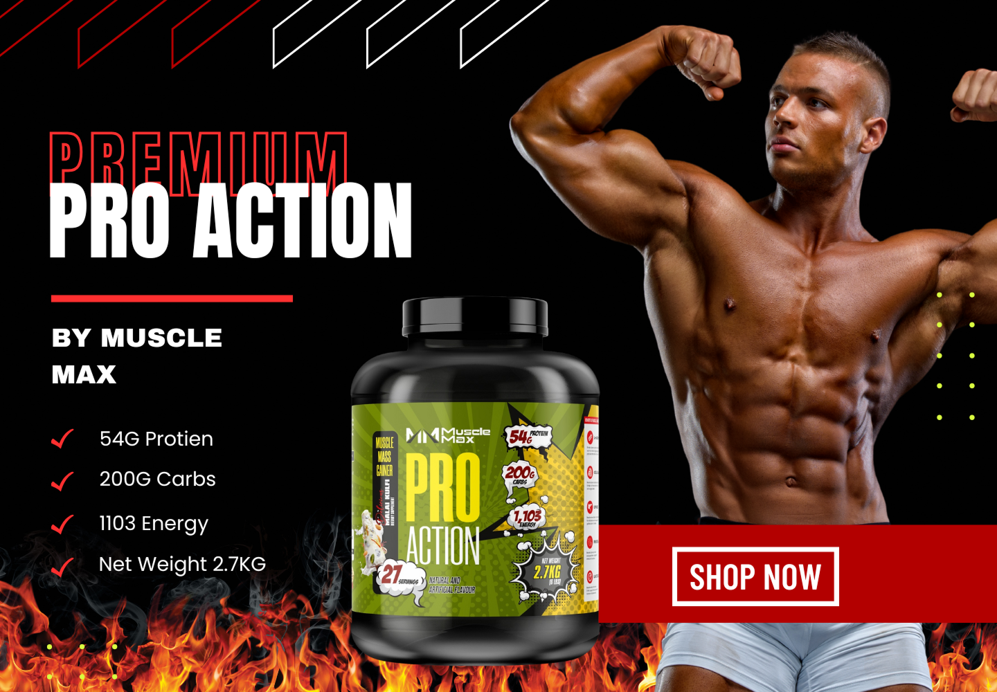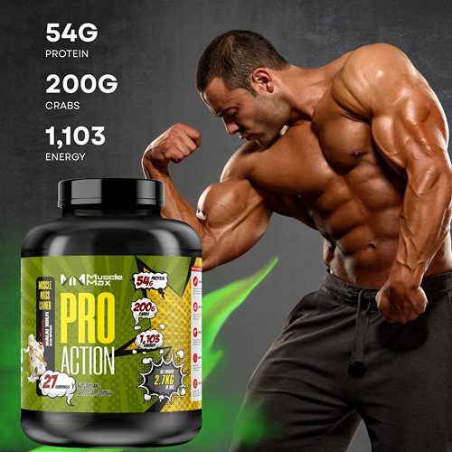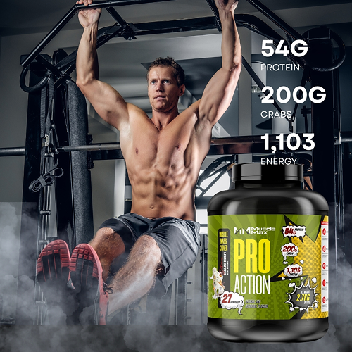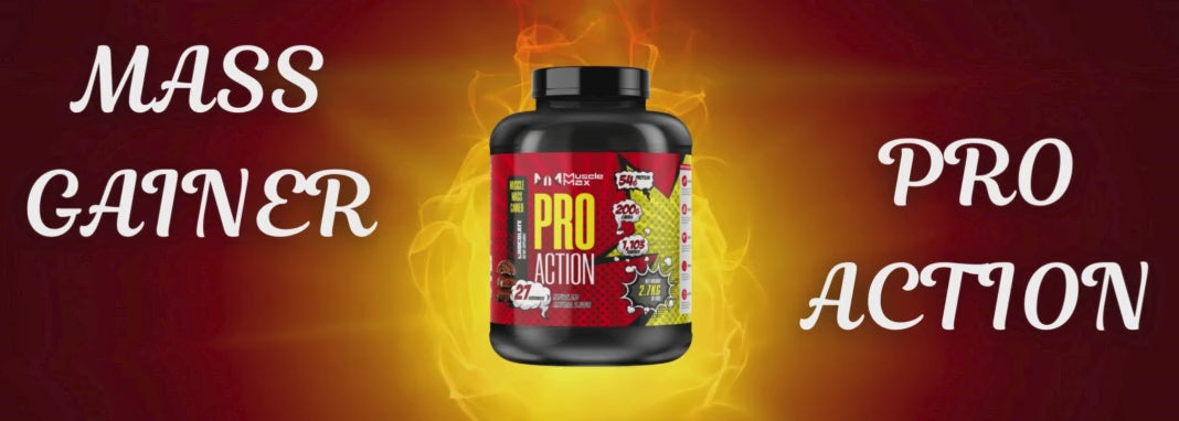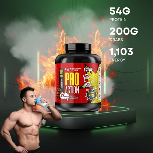 Pro Action by Muscle Max is a high-calorie, high-protein mass gainer designed to help you build serious size and strength. Ideal for hard gainers and those struggling to meet calorie goals, it fuels muscle recovery and growth with every scoop.