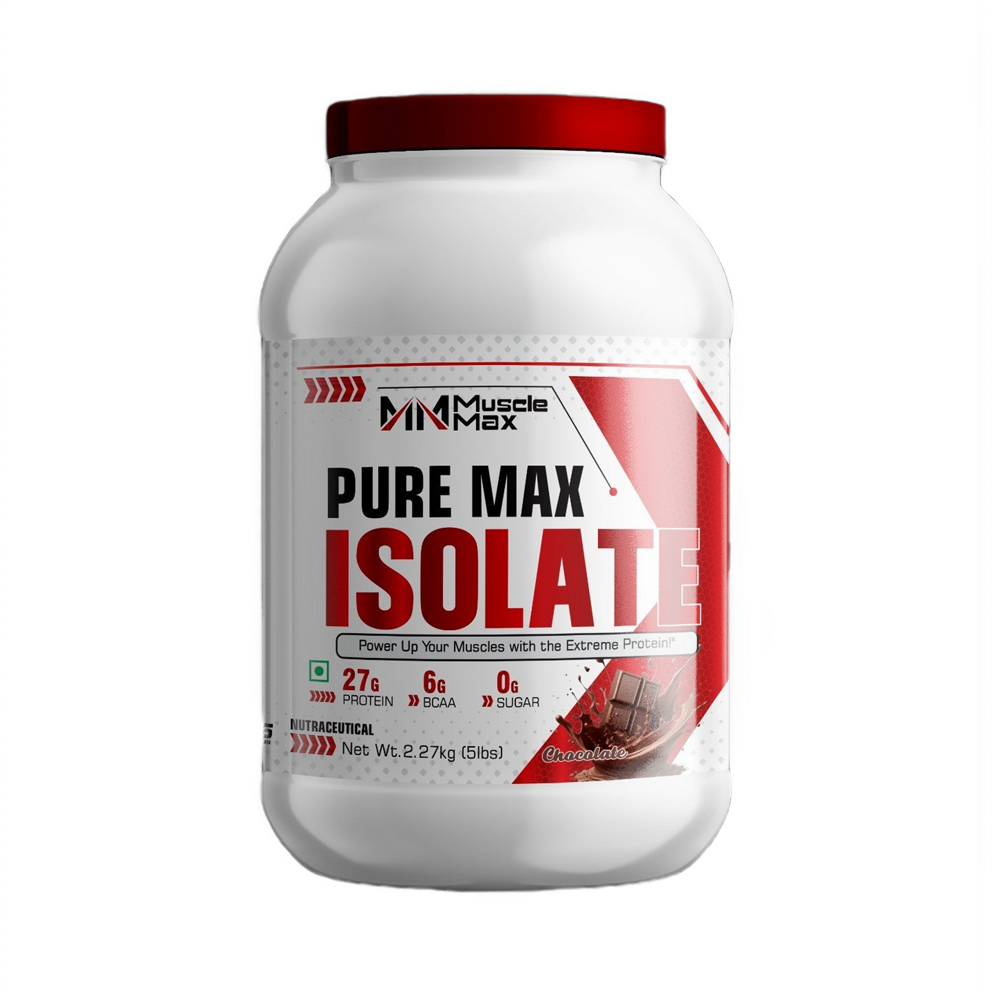 Pure Max Isolate is a high-quality whey protein isolate supplement designed to support muscle growth, recovery, and overall fitness. With its fast-absorbing formula, high protein content (20-30g per serving), and low fat and carbohydrate levels, it provides a clean and effective protein source for athletes, fitness enthusiasts, and anyone looking to boost their protein intake.